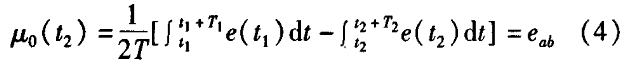 冷熱水流量計一般都采用工頻交流電源供電,其電源電壓的幅值和頻率的變化都會給冷熱水流量計帶來電源性干擾噪聲。對電源電壓的幅值變化,因采用多級集成穩(wěn)壓,一般而言電源電壓的幅值變化對電磁流量的測量精度影響不大。當電源電壓的頻率波動時,雖然其波動范圍有限,但對冷熱水流量計測量精度影響較大。為了解決工頻干擾問題,實現對流體流速感應電勢e柚信號的準確測量,需利用以下基本關系:①勵磁周期為工頻周期的整數倍,即勵磁頻率為50/nHz(n為偶數);②正負勵磁下的同相位采樣。圖2是對應低頻矩形波勵磁形式下的典型電勢信號形式,按上述關系在一個勵磁周期下,若假設t。和t:點為工頻干擾的等效干擾點,且采樣寬度T=T1=T2,則e –ab的基本算式為:,