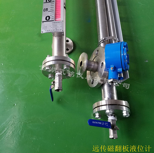 在管體的另一側(cè)可按用戶需要加裝電遠(yuǎn)傳變送器,將液位高度轉(zhuǎn)換成標(biāo)準(zhǔn)電流信號(hào)輸出,以供液位信號(hào)輸出,以供液位信號(hào)遠(yuǎn)傳至二次儀表進(jìn)行指示控制與檢測。