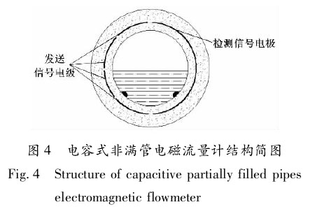 ②電容式非滿管污水廠出水用電磁流量計(jì)h。電容式非滿管污水廠出水用電磁流量計(jì)結(jié)構(gòu)簡圖如圖4所示。、檢測信號電極  發(fā)送信號電