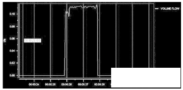 灌裝頭的*終出口部分為10~14mm的可更換縮口。通過(guò)縮口,可以產(chǎn)生背壓,一般縮口內(nèi)置蜂窩狀虹吸管,保證灌裝前后的管道滿管。從測(cè)試的流量波形上看,10mm的灌裝頭產(chǎn)生適當(dāng)?shù)淖枘嵝Ч髁壳€較穩(wěn)定。