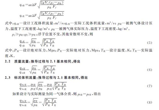 流量計(jì)在測量氣體介質(zhì)時(shí),當(dāng)氣體溫度、壓力不穩(wěn)定,造成被測氣體工況密度變化較大時(shí),流量指示誤差增大,此時(shí)應(yīng)進(jìn)行溫度壓力補(bǔ)償計(jì)算,恢復(fù)儀表測量的準(zhǔn)確性。具體推導(dǎo)、計(jì)算如下: