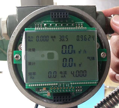 儀表通徑為DN50,英文顯示, 4~20mA電流信號(hào)輸出,溫壓補(bǔ)償型