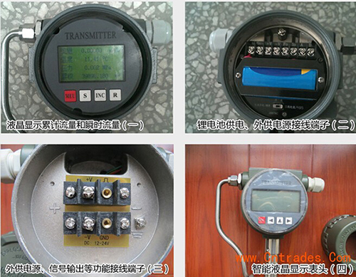 液晶顯示:流里計配備高精度液晶顯示屏,雙排液晶、8位數字顯示,能顯示累積流里、目舜時流里、流速、通訊地址和輸出20mA對應的大流量(可以任意設定)及流向指示。里程比:20: 1。