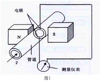 硝酸流量表的設計是根據法拉*電磁感應定律,導管中導電的流體被看作導體,管道的內徑可看作道導體的長,原理圖如圖1所示,兩電極裝到與管道的中心軸和磁場方向組成的平面相垂直,拾取液體產生的感應電動勢。感應電動勢為:
