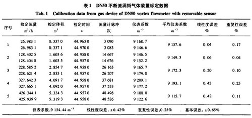 由表1和表2的實際標定數(shù)據(jù)可知,在量程比大于1:10的情況下,用不斷流煤氣流量計測量氣體或液體介質(zhì)時,基本誤差及重復(fù)性均能達到中華人民共和國機械行業(yè)標準JB/T9249一1999《渦街流量傳感器》[’1中所規(guī)定的精度要求。