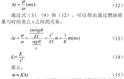 從式(15)中可以得出,當(dāng)渦圈彈簧材料和形狀確定和渦輪外形尺寸確定的情況下,時(shí)間差△ t 與通過(guò)的燃油質(zhì)量 m 成正比例關(guān)系,則測(cè)量起始脈沖信號(hào)與終止脈沖信號(hào)的時(shí)間差△ t,即可得出通過(guò)流量計(jì)的燃油質(zhì)量 m。
