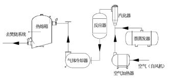 以原料萘為例。萘由原料儲罐經液萘泵加壓后進入萘蒸發器,液萘在萘蒸發器內由中壓蒸汽加熱汽化分離,經流量調節閥、流量計和氣萘切斷閥后進入汽化器;空氣經風機加壓后,經空氣加熱器加熱后進入汽化器,氣萘和空氣在汽化器內混合均勻后進入氧化反應器上部,經催化床層發生氧化反應生成苯酐和少量的副產物(以順酐、苯甲酸、萘醌、和鄰苯二甲酰亞胺為主);反應氣體經液體渦街流量計冷卻后再進入切換冷凝器進行凝華捕集,少量未被捕集的有機物和不凝氣體經尾氣管路進入蓄熱焚燒裝置焚燒處理,焚燒后的尾氣達標排放。