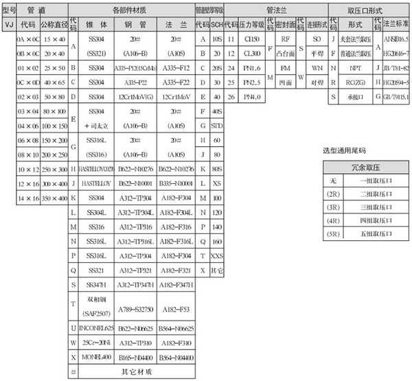 3.管道式SO、WN法蘭連接(VS、VW)選型