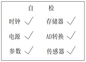 如果儀表運行錯誤,可通過進入該選項,查詢具體的儀表運行錯誤,打鉤為正常,打叉為錯誤。另儀表啟動時執行自檢,如果有錯誤將顯示此界面。在儀表運行時,也可進入該選項查詢儀表運行狀態。